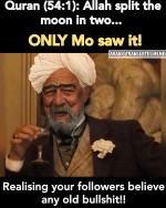 “The hour drew nigh and the moon did rend asunder. And if they see a miracle they turn aside and say: Transient magic. And they call (it) a lie, and follow their low desires; and every affair has its appointed term.” Quran 54:1-3