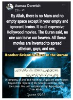 Question one: where are the stars from Earth? Are they close or millions light years away! How can Allah say the stars are in the “near heaven”! This is what a desert dweller would have said – with no idea that stars are actually suns millions of light years away! Our Sun, if anything, is close and our moon closer!