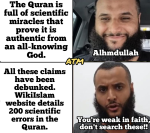 There you go… Three verses, three scientific errors… You will find the Dawah and their trolls scratching their heads and inventing interpretation… All so they can cling to their bind faith. For Allah loves blind faith.