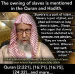 I challenge anyone who can give me a clear black & white verse in the Torah, Bible, Quran or Hadith that says owning of slaves is forbidden (haram!). Please spare us your apologetic and pathetic attempts to reinterpret stuff. For hundreds of years, your ancestors did not read your book right? Seriously???